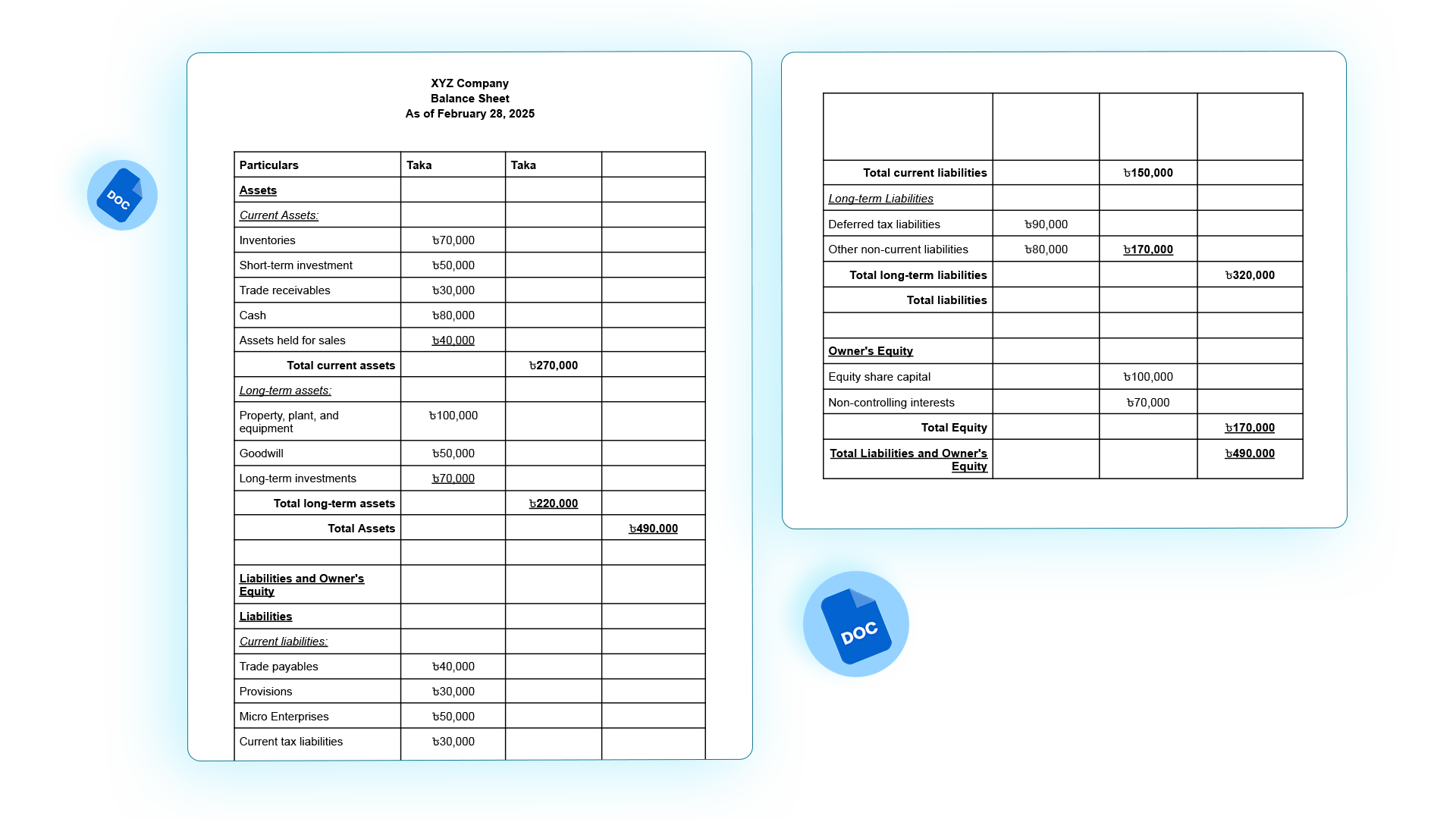 Balance Sheet format in Doc for Small Business