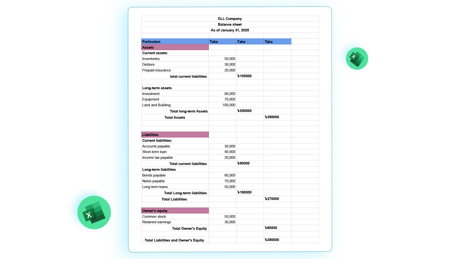 Here is an Excel balance sheet for Bangladeshi business.