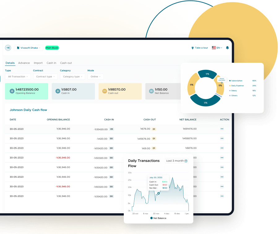 Track expenses in real-time, monitor budgets, stay cash-positive, and track expense requests and approvals with Financfy.